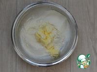 В миске смешать муку, соль, разрыхлитель, сахар. Добавить сливочное масло ТМ Милье, перетереть руками все в крошку. |