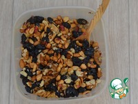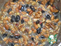 Аккуратно влить горячие сливки, перемешать, добавить орехи (в этот раз я еще добавила изюм), перемешать. |