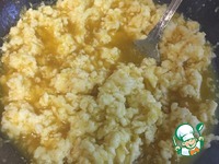 Добавить муку, соединенную с разрыхлителем и замесить тесто. Накрыть пленкой и поставить в холодильник на 3 часа. |