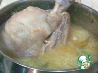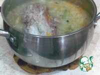 Мясо вынуть, разделить на волокна, сложить обратно в кастрюлю. |