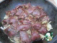 Лук на сковороде так приятно пахнет.. У меня было фисташковое масло, но никто не запрещал брать подсолнечное, рапсовое или оливковое :) Подождите когда лук будет румяным. |