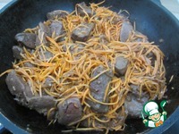 Затем идет морковка, если тонко нарезать, то тушить буквально 3 минуты. |