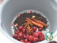 Чай я взяла ароматизированный. В его составе: чай черный, клюква, ваниль, ананас сушеный, лепестки розы. |