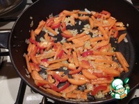 Добавляем морковь с перцем и обжариваем примерно минут 8-10. |