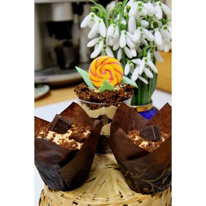 Разложить тесто по формочкам (бумажным или силиконовым) не более 2/3 от объема. Накрыть фольгой. |