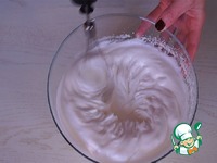 1. Отделить белки от желтков. Белки взбиваем в пену, затем добавляем половину сахара и взбиваем ещё раз до устойчивых пиков |