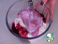 7. Тем временем готовим крем: сметану взбиваем с черникой в однородную массу |