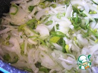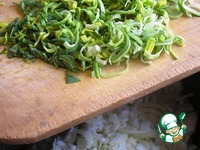 Лук очистить и нашинковать тонкими полосками. Порей хорошо промыть и так же нашинковать соломкой. Много лука в неустойчивую погоду- самое то! |