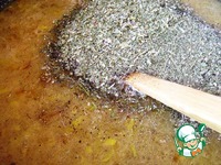 Всыпать растертые в ладонях сухие пряности. Чабреца и шалфея взять совсем немного. Посолить по вкусу. Накрыть крышкой и томить на медленном огне 10 минут. Оставить настаиваться еще на 10 минут. |