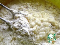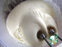 Добавить размягченное масло мелкими кусочками, продолжая взбивать. |