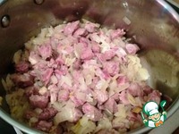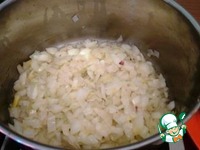 В кастрюле с толстым дном на смеси оливкового и растительного масел обжарила лук до золотистого цвета, |