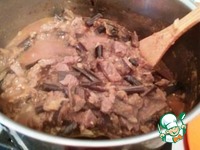 Добавила к мясу, все хорошо перемешала, довела до кипения, проверила на соль и оставила томиться на 20 минут под закрытой крышкой. |