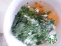 В яйца добавляем нарезанные овощи, шпинат можно свежий или замороженный, взбиваем венчиком до пышной пены |