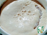 Воду налила в пиалу, насыпала сахар и дрожжи. Размешала и поставила в тёплое место. Через 30 минут дрожжи забродили и образовалась шапочка. |