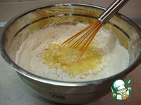 Всыпать муку с разрыхлителем и перемешать до однородной массы. |
