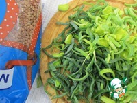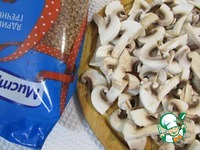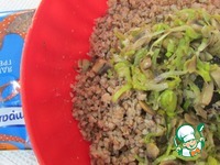 Соединить гречневую крупу и грибы. Хорошо перемешать |