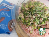 Обжаренную смесь добавить к фаршу. Перемешать. |