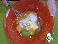 Яйца взбить с сахаром, солью и сливочным маслом. |