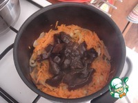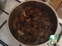 Грибы выложила шумовкой. Делаем до готовности, до полного выпаривания жидкости. Можно обжарить, я больше томлю. |