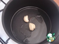 В разогретое масло оливковое выложила 2 дольки чеснока, раздавленных плоской стороной ножа. Чеснок держим с минуту, чтобы он отдал свой аромат маслу. затем его можно вытащить. Я оставила. |