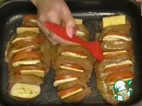 Положите в разрезы по кусочку свежего помидора и сыра. Моцареллу и твердый сыр я чередовала. |