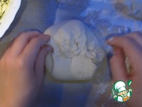 Края плацинды соединить вместе и слепить к середине. Оставить на 5 минут. |