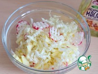 Описание: Богатый витаминами, ароматный салат дополнит ваш семейный обед. Салат прост в приготовлении и больших временных затрат не потребует.