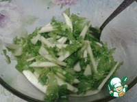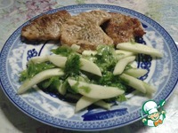 Когда вся индейка будет готова, снять со сковороды и переложить на большую тарелку. Вытащить из холодильника наш салатик. Вот вариант подачи индейки с салатом. Приятного аппетита!) |