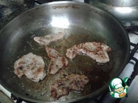 На смазанную маслом раскалённую сковороду выложить нашу индейку (в муке не надо обваливать, и так нормально получается) и накрыть крышкой немного меньшего размера, чем сковорода. |