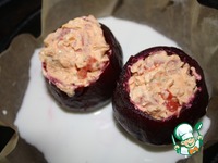 Наполнить свеклу. На дно формы налить молока или сливок и поставить запекаться. |