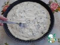 Равномерно распределяем, закрывая начинку (я использовала вилку). |