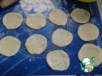 Тесто делим на небольшие кусочки. Раскатываем в виде лепешек. У меня получилось 20 шт. |