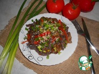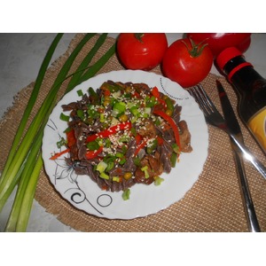 Зеленый лук мелко нарезать. Выложить на порционные тарелки, посыпать зеленым луком и кунжутом. Приятного аппетита! |