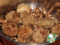 В кастрюлю к сваренной фасоли добавляем обжаренные фрикадельки. |