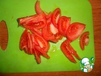 В сковороду выложить помидоры, тушить в течении 5-7 минут, припаравить специями, при необходимости посолить. |