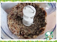Пока готовится тесто, делаю начинку. Размороженные опята укладываю в чашу блендера и в пульсовом режиме измельчаю до состояния небольших кусочков. Не в кашу! |