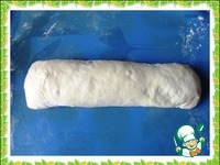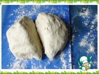 Подошедшее тесто вываливаю на коврик, слегка присыпанный мукой, и разделяю на две равные части, будет у меня два рулета. |