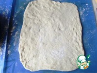Одну часть теста накрываю миской, а другую раскатываю в условный прямоугольник размером приблизительно 21х30 см |
