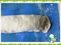 Свободные края теста кисточкой смачиваю слегка водой и сворачиваю рулет. Боковые края рулета обжимаю. |