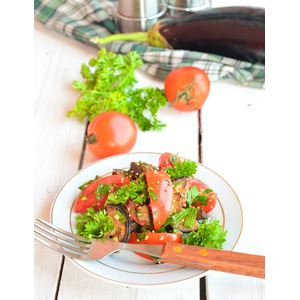 Описание: Сочетание обжаренных пикантных баклажанов со свежими помидорами и зеленью - беспроигрышный вариант вкуснейшей закуски!