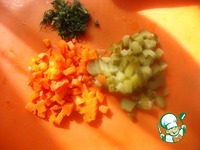 Морковь и огурец нарезать кубиками, зелень нарезать произвольно. |