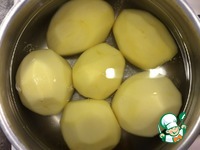 Отварить картофель, подсушить, хорошо размять толкушкой. |