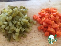Овощи нарезать небольшими, одинаковыми кубиками. |