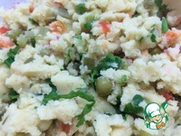 Вылить в картофель и снова помять толкушкой. Оставить на время, пусть немного остынет. |