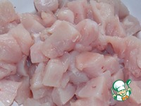 Филе нарезать маленькими кубиками. |