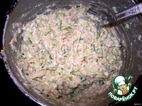 Начинка: В мисочку всыпать нарезанный мелкими кубиками огурец. |
