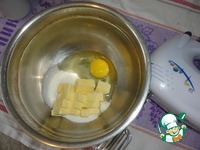 Масло комнатной температуры, яйцо (заранее достаньте что бы оно было не холодное) и сахарный песок взбить миксером до однородного состояния. |