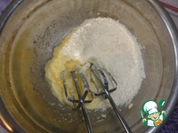 К взбитой массе добавить просеянную муку с разрыхлителем и все еще раз взбить миксером. |