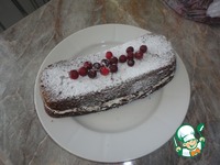 Промазанный творожным кремом брауни украсить сверху сахарной пудрой и ягодами клюквы. |