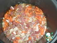 В чашу мультиварки налить немного растительного масла, ориентируясь на жирность мяса (пожирнее мясо - поменьше масла). Для утятницы то же самое - налить масло в зависимости от жирности мяса |